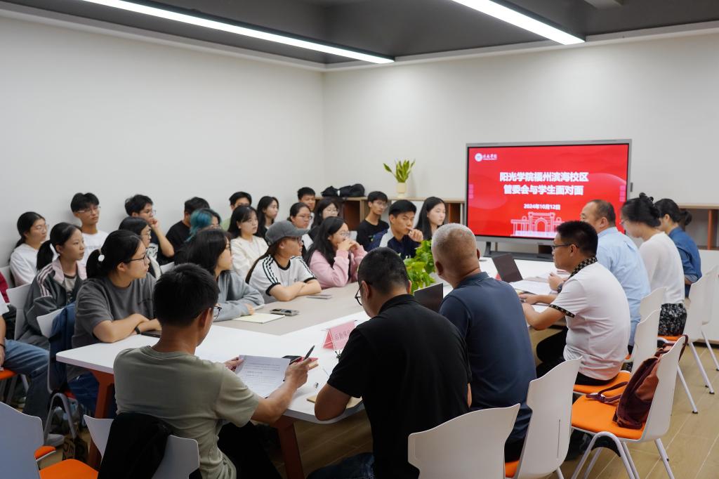 为进一步提升学校服务育人质量,畅通学校与学生的沟通渠道,了解学生入学以来学习生活状况,10月12日,我校滨海校区开展“管委会与学生面对面”座谈会。滨海校区管委会常务副主任王福清及校团委、校园管理处、安全保卫处等有关职能部门代表参会,与学生代表面对面交流,倾听学生需求和心声。
