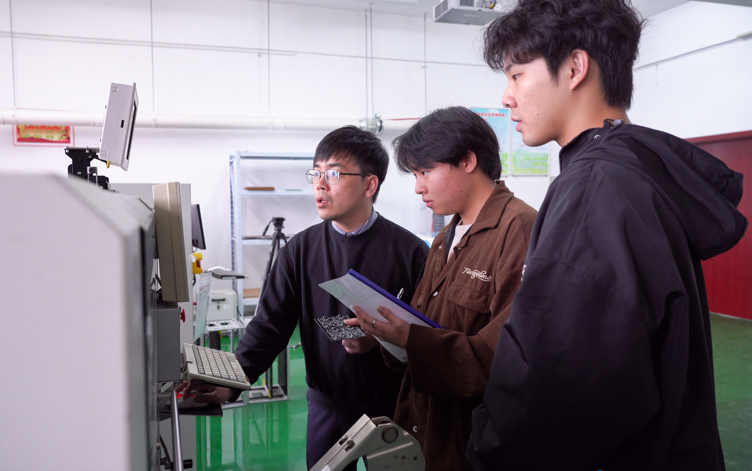 程勇勇老师和学生一起操作实验设备